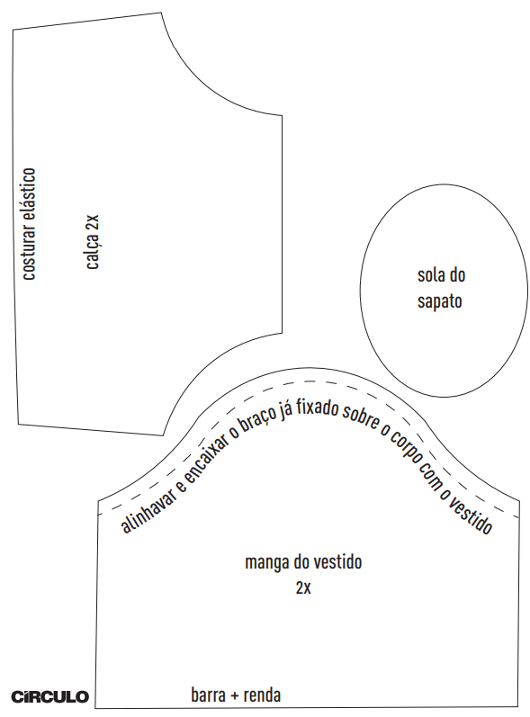 - 30 cm de tecido cru para o corpo.