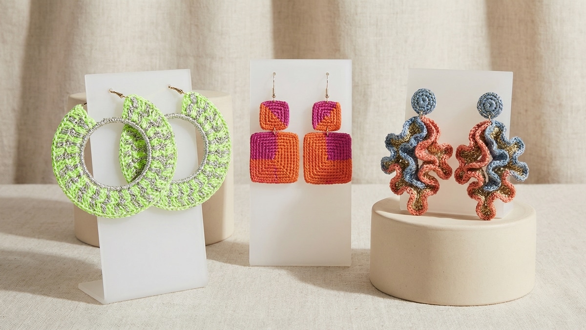 Quanto aos metais, troque os anzóis simples por bases de pino em aço inoxidável ou banhadas a ouro. Isso valoriza instantaneamente o produto e evita alergias. Use argolinhas de ligação delicadas para conectar o crochê à base metálica, criando um ponto de movimento que impede que a peça fique rígida demais na orelha. Essa fusão de texturas é o que define os designs criativos e charmosos de 2026.