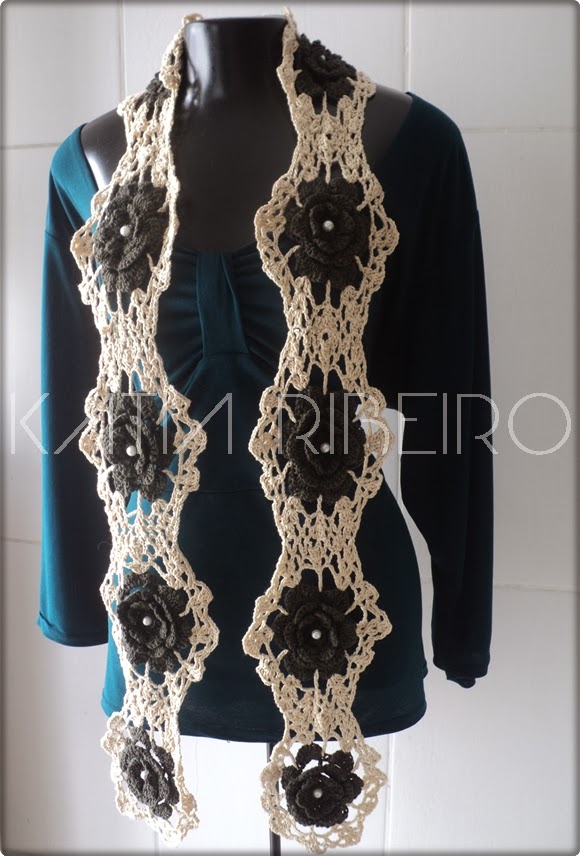 Hoje vim mostrar para vocês o Cachecol Bellane, uma peça assinada pela minha amiga Silvia Gramani que faz peças belíssimas como muitas de vocês já conhecem, esta faz parte de sua Apostila II onde você pode também adquirir clicando AQUI .