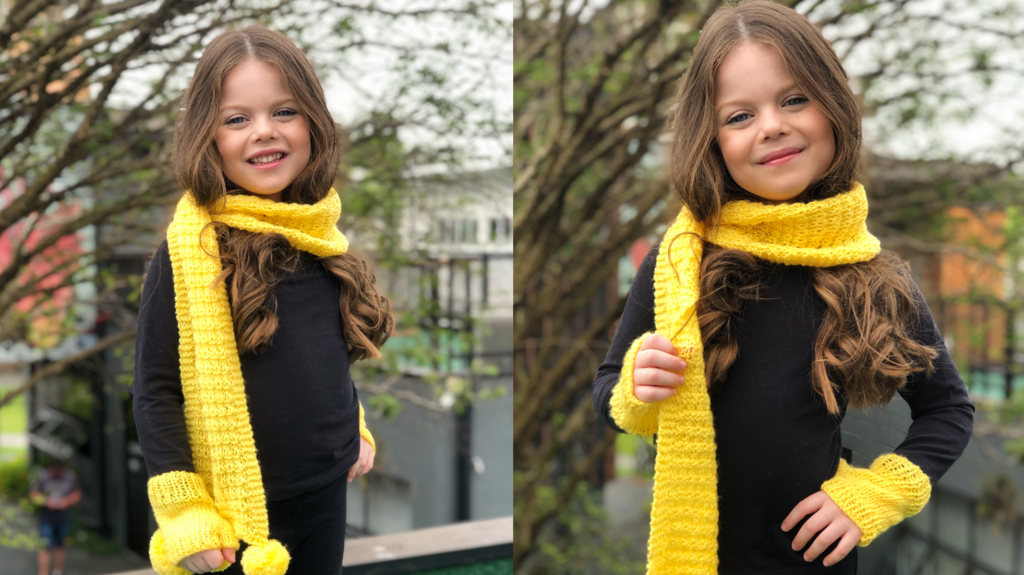 - Fios de Alta Qualidade: Tanto o cachecol quanto as luvas são feitos com fios de tricô de alta qualidade, que garantem um toque macio e confortável. O material é escolhido para proporcionar calor sem causar irritação na pele sensível das crianças.