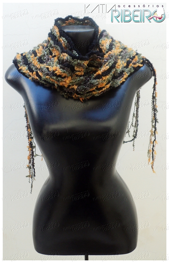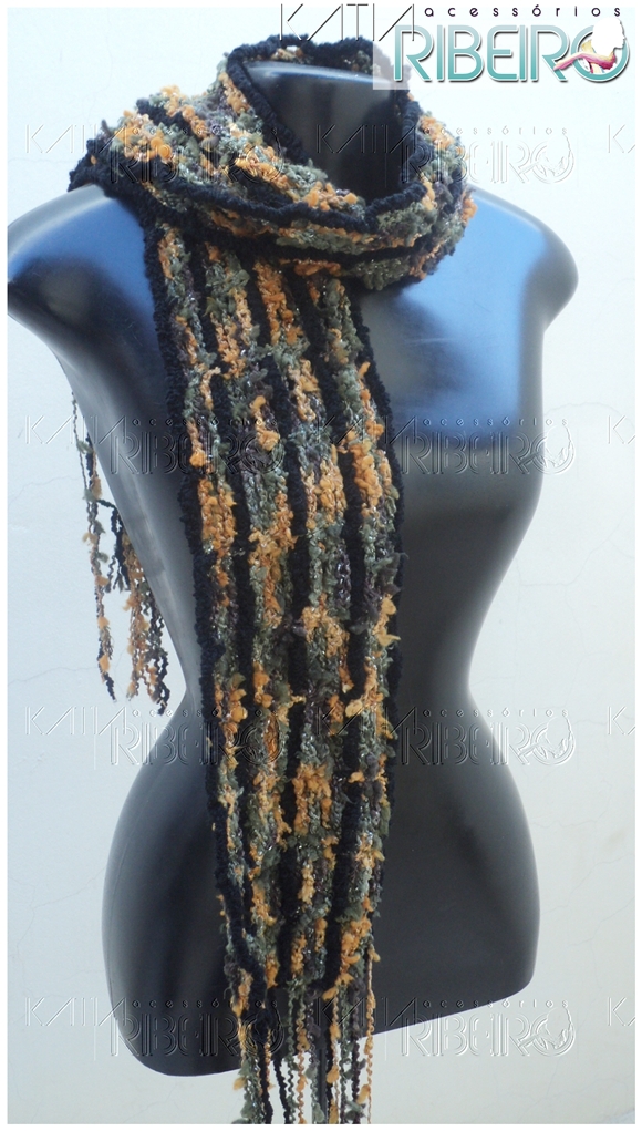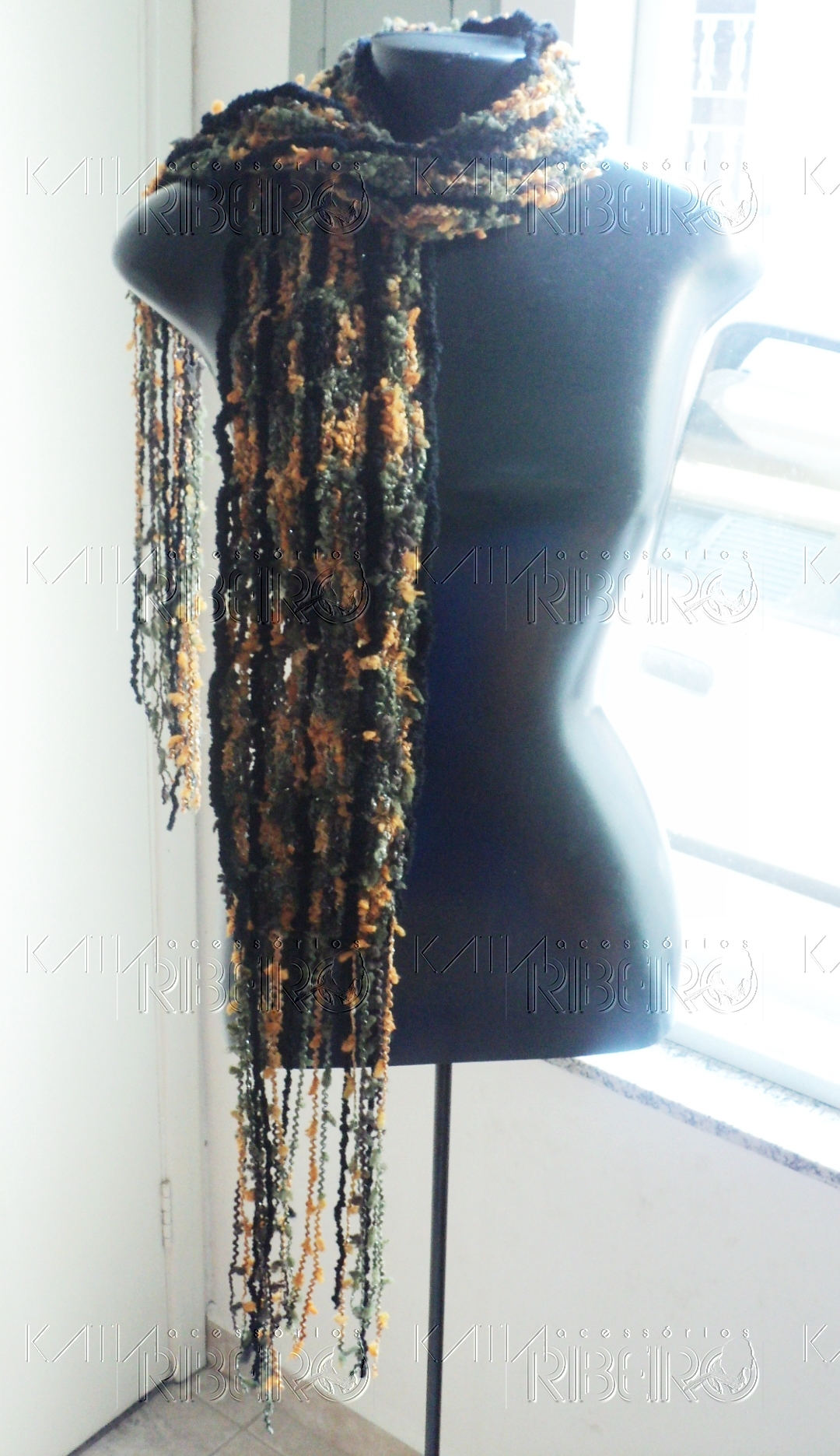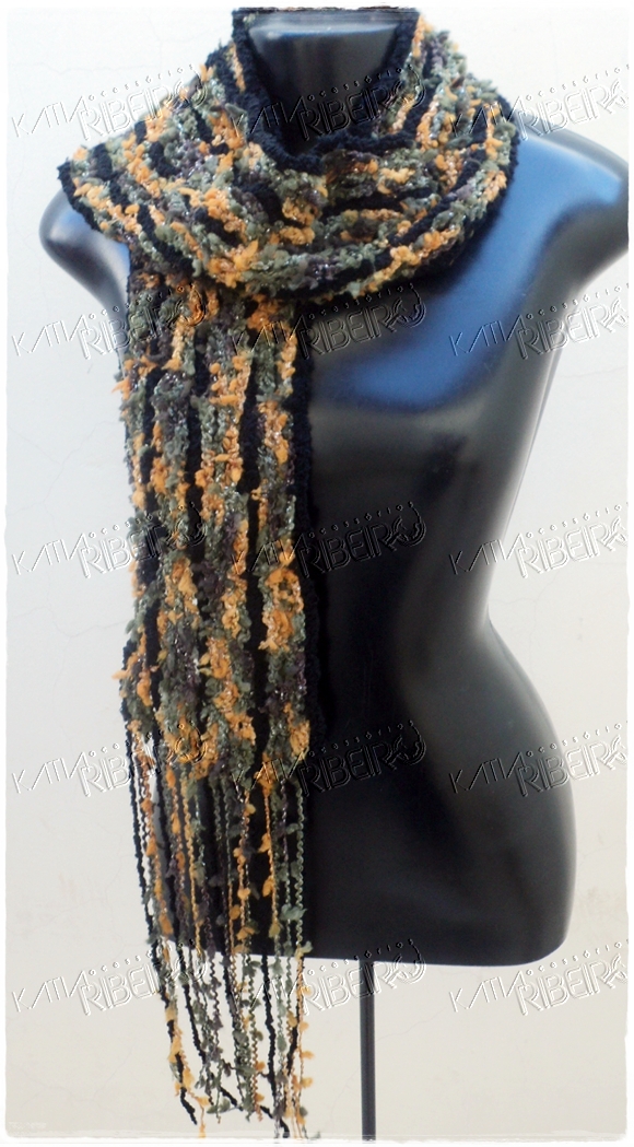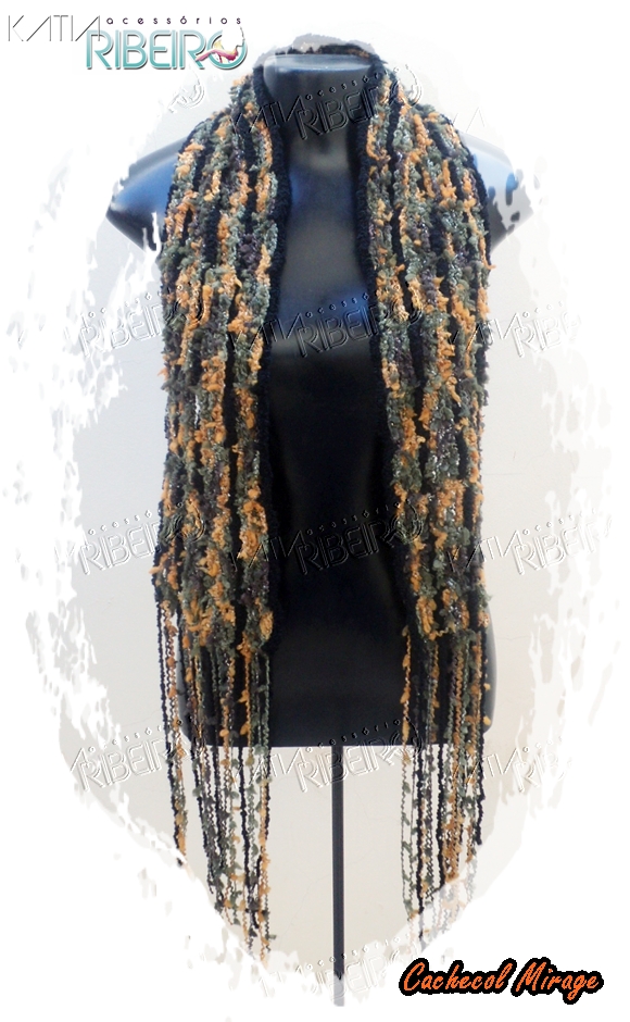 Hoje trago o Cachecol Mirage, ele foi feito somente com correntinhas e apesar de simples o grande diferencial aqui ficou por conta do fio Mirage da Coats Corrente que apresenta em sua composição um brilho prateado e um degradêe de cores que vai do marrom para o verde e cinza e também usei o fio pluma para complementar, enfim, um cachecol rápido e fácil que misturando cores, texturas o resultado fica muito bom!! Aprendi no programa Arte Brasil e abaixo posto o link do vídeo para quem quiser faze lo ok?