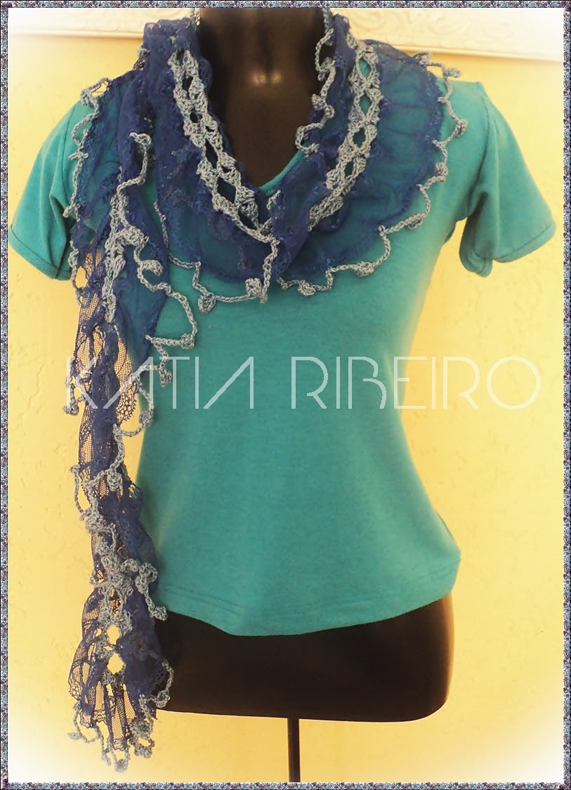 Fiz mais uma cachecolar com o renda tricô da Círculo seguindo o maravilhoso pap da querida artesã Izabel Bonatti, AQUI você confere a outra postagem que fiz com o link direto para o pap e vídeo que ela fez ensinando a peça , este fiz em três tons de azul diferentes, deu um super efeito !