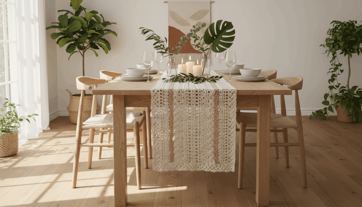 Existe um detalhe capaz de reorganizar o olhar, aquecer o ambiente e valorizar o tampo que você ama — sem reformas nem gastos altos: os caminhos de mesa de crochê. A trama artesanal cria uma linha central que guia a composição, acolhe flores, velas e fruteiras e, de quebra, protege a superfície do atrito diário. Em madeira, ressalta o calor; no vidro, adiciona aconchego; na pedra, suaviza o brilho. Com fio certo, medidas proporcionais e um acabamento limpo, a mesa passa de “ok” a “uau” na primeira olhada.