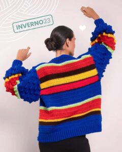 O casaco oversized pode ser confeccionado em diferentes materiais, como lã, tricô, algodão, entre outros, e está disponível em uma variedade de modelos e designs. Geralmente, ele apresenta ombros caídos, mangas largas e comprimento estendido, cobrindo parcial ou completamente o quadril. Assim, aprenda aqui no blog Katia Ribeiro Crochê essa linda peça.