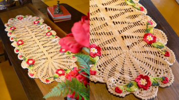 1.3k Views no CROCHÊ, Tapete Receita Caminho de Mesa em Crochê Oval Primavera: Elegância e Cor para Sua Mesa Veja Mais