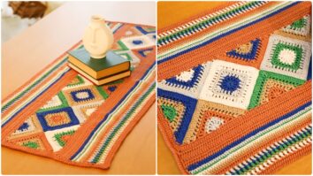 999 Views no CROCHÊ, Trilho de Mesa Trilho de Mesa em Crochê Dark Cheddar: Decoração Vibrante! Veja Mais