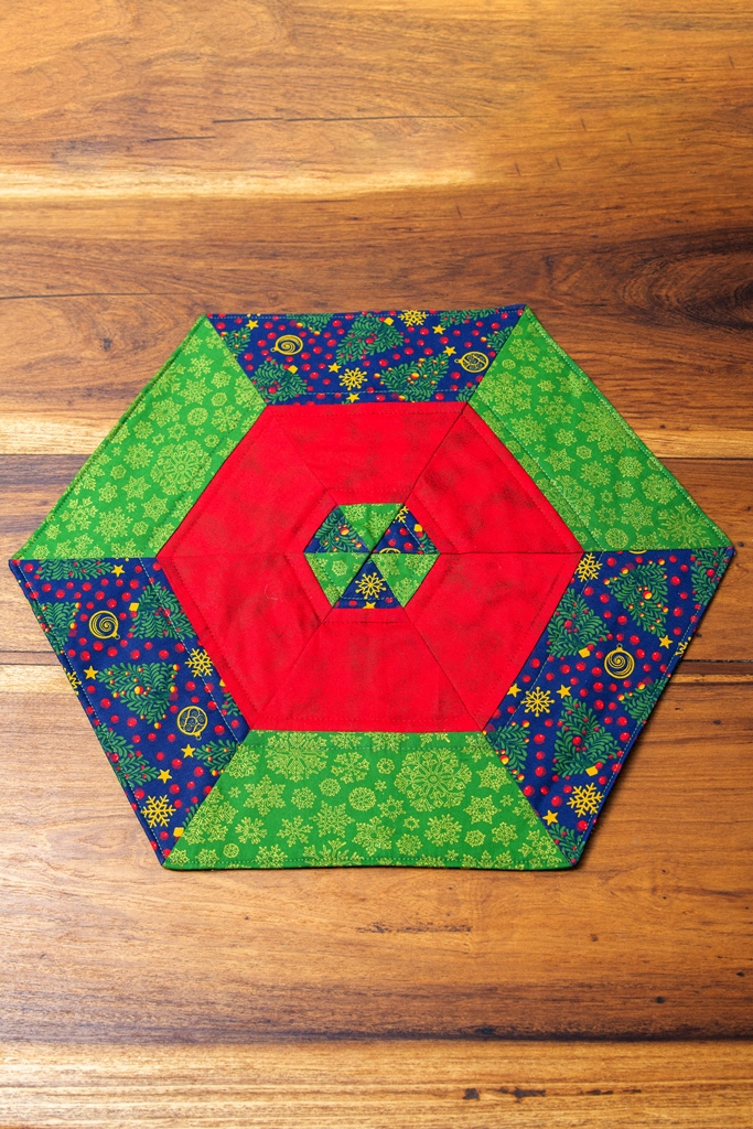 - Atenção ao alinhar os triângulos para que as emendas dos tecidos fiquem perfeitas.