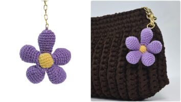 - Finalize costurando a argola do chaveiro na base do caule, assegurando firmeza para o uso cotidiano.