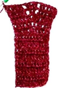 0 – Para a largura de 55cm, comece com 74 correntes e suba mais 3 correntes para ser