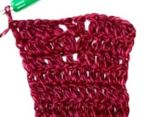 4 carr – Agora comece com 1pa, depois faça outro pa, pule 1 corrente, faça 1pa, volte na corrente que foi pulada e faça 1pa e siga repetindo isso por toda a carreira e termine-a com 2 pa