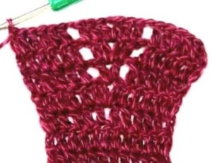 faça 3 correntes e pule 3 pontos, faça 1pb, faça 3 correntes e pule 3 pontos e repita esse