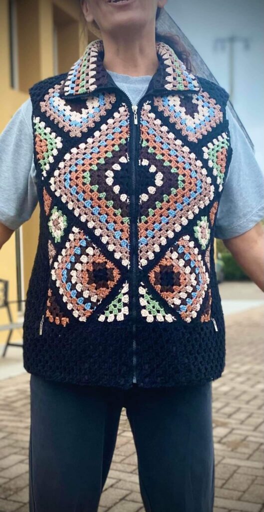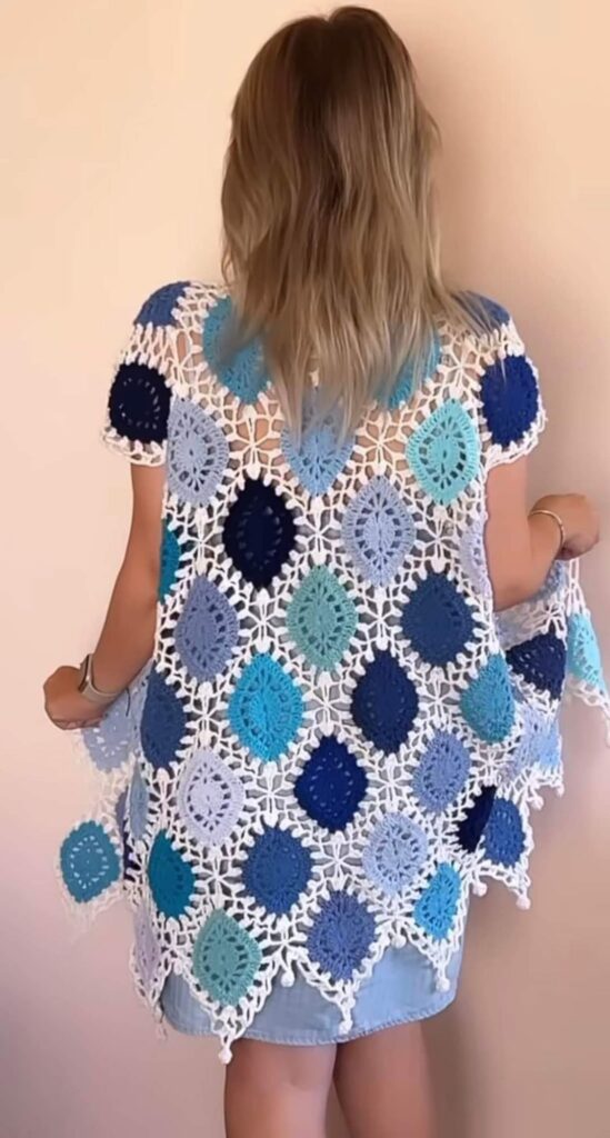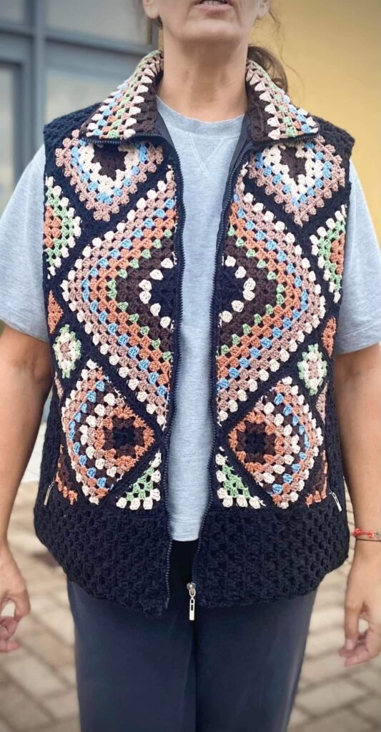 - Com Jaquetas: Um colete de crochê pode ser usado por baixo de uma jaqueta de couro ou jeans, proporcionando uma camada extra de aquecimento e um visual moderno.