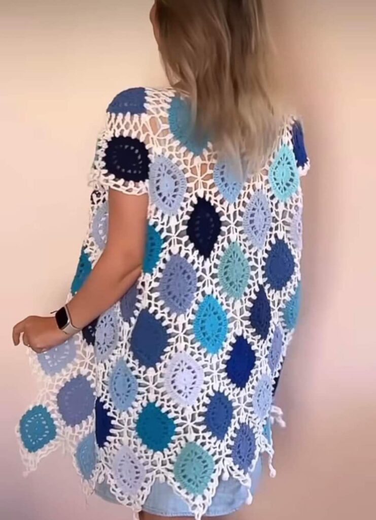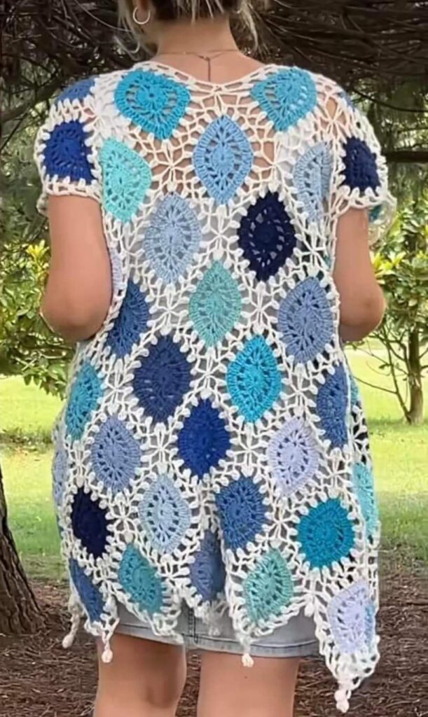 - Sobre T-Shirts: Combine um colete de crochê com uma camiseta básica e jeans para um visual descontraído.