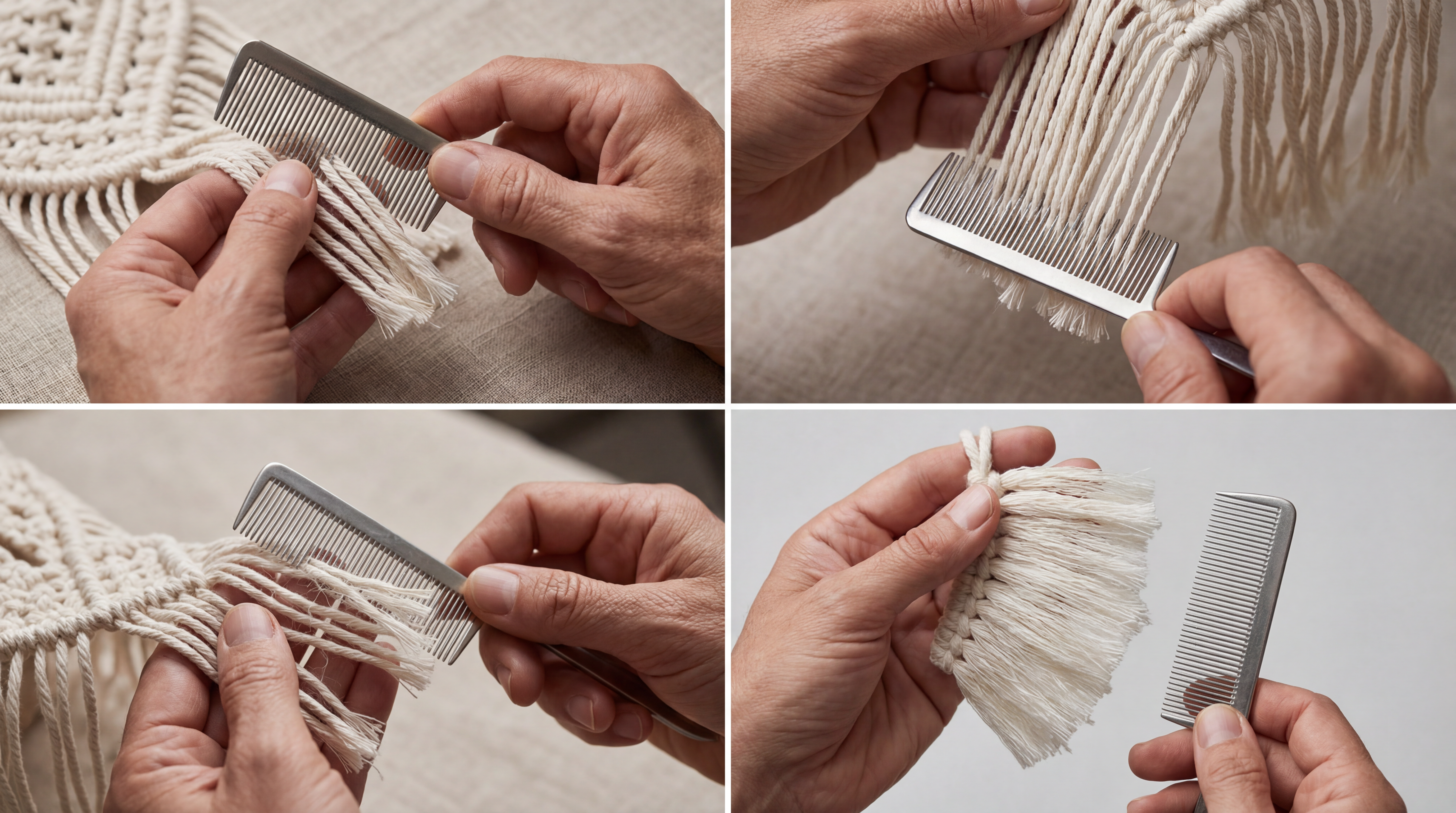 A boa notícia é que você não precisa investir em escovas de cerdas de aço ou rastelos profissionais de tecelagem. O segredo para franjas impecáveis está guardado na gaveta do seu banheiro: um simples pente de cabelo.