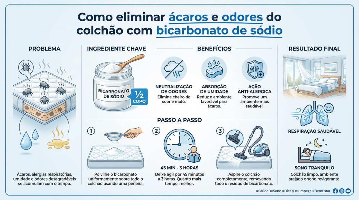 - Redução de Alergias: Menos ácaros significam menos espirros e coriza ao acordar.