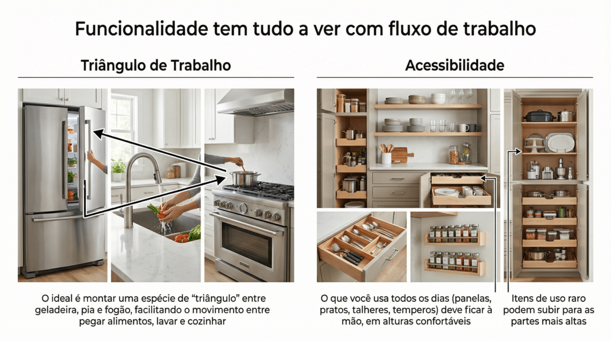 Uma cozinha organizada é uma cozinha leve. O acúmulo de utensílios que “talvez um dia eu use” é o que estrangula o espaço.