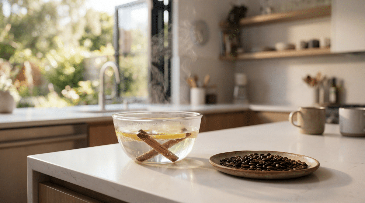 - O Truque Cítrico: Ferva fatias de limão e cascas de laranja. Os óleos essenciais cítricos contêm limoneno, um desengordurante natural volátil que ajuda a quebrar o peso do ar pesado.