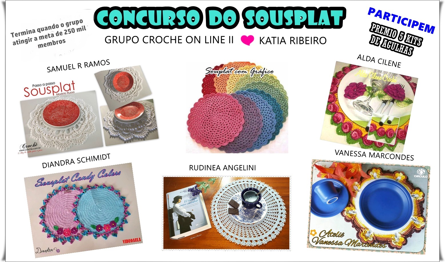 Vim convidá las para participar do nosso Concurso Cultural onde vou premiá las com 5 kits de agulhas de crochê basta fazer um destes sousplats em crochê regulamento aqui .