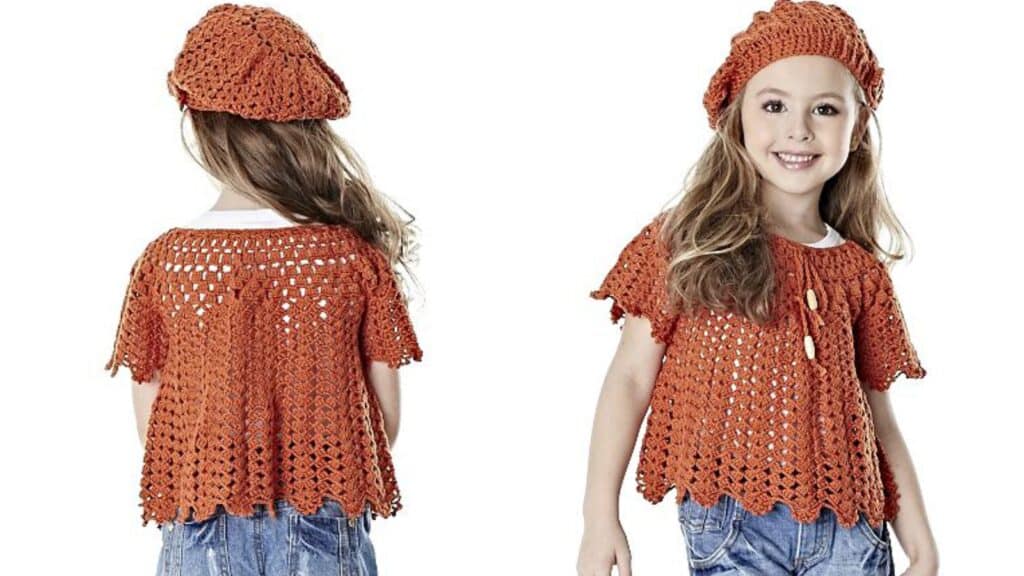 EXECUÇÃO CONJUNTO DE CROCHÊ INFANTIL FERRUGEM