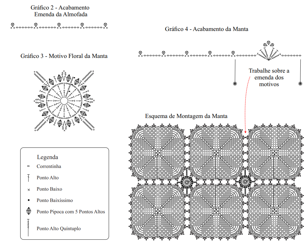 Gráficos do Conjunto de Crochê Almofada e Manta: