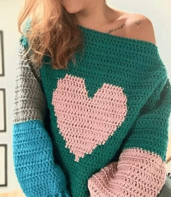 Peças com Coração em Crochê com Ponto Conduzido com Gráficos Inspiradores