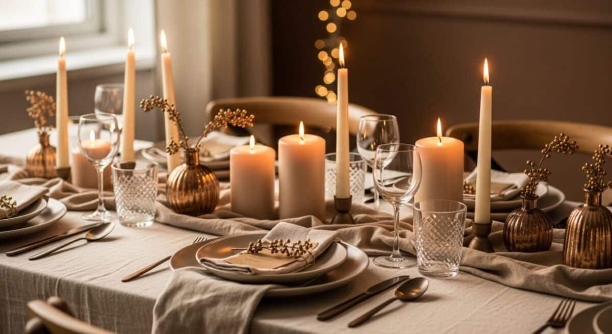 Para pontos de luz, entram o amarelo amanteigado e metálicos discretos, como dourado champagne e prata escovada. Quem ama tradição pode somar vermelho cereja com verde pinheiro, agora em bases de branco quente e cinzas suaves, o que deixa tudo mais adulto e calmo.