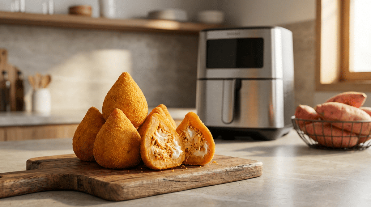 Além disso, o preparo na fritadeira elétrica torna a receita mais prática e livre de gorduras. Frequentemente, a falta de tempo atrapalha a alimentação saudável, mas essa opção resolve o problema com rapidez. Para um resultado ideal, o segredo da coxinha de batata-doce está no equilíbrio da massa e na temperatura correta da Airfryer, garantindo textura macia por dentro e firme por fora.