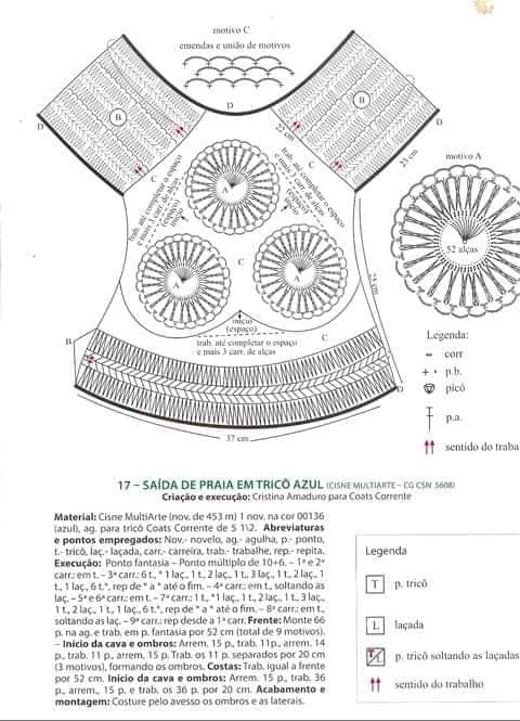- Inicie o trabalho pelo busto, executando a corrente inicial e seguindo o desenho do gráfico.