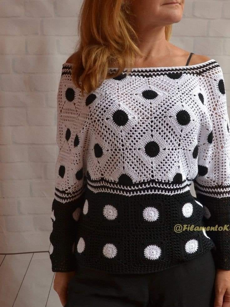 O preto e branco são cores atemporais que nunca saem de moda. Quando usadas em peças de crochê, elas trazem um ar de sofisticação e minimalismo. Um vestido de crochê em preto e branco pode ser a escolha perfeita para um evento social, enquanto uma blusa ou suéter nessas cores pode ser ideal para o dia a dia. Além disso, o contraste entre o preto e o branco realça os detalhes do crochê, fazendo com que cada ponto se destaque.
