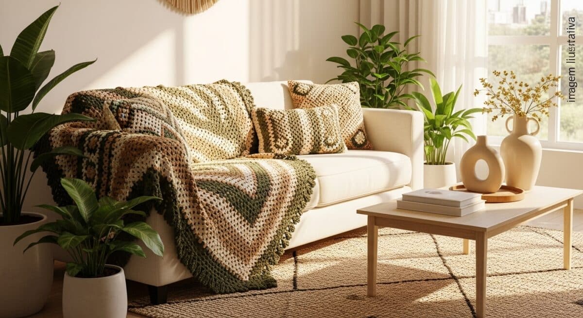 O crochê conquistou espaço em todos os segmentos criativos. Na moda, aparece em vestidos, coletes, bolsas e biquínis com textura tridimensional. Na decoração, surge em mantas, almofadas, painéis de parede e sousplats, trazendo aconchego e personalidade aos ambientes.