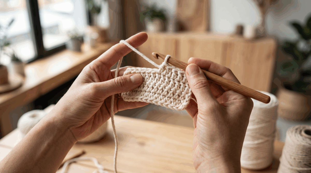 Antes de colocar a mão na agulha, vale lembrar: crochê é repetição. É como aprender a escrever — no começo sai torto, apertado demais, frouxo demais… mas depois vira automático.