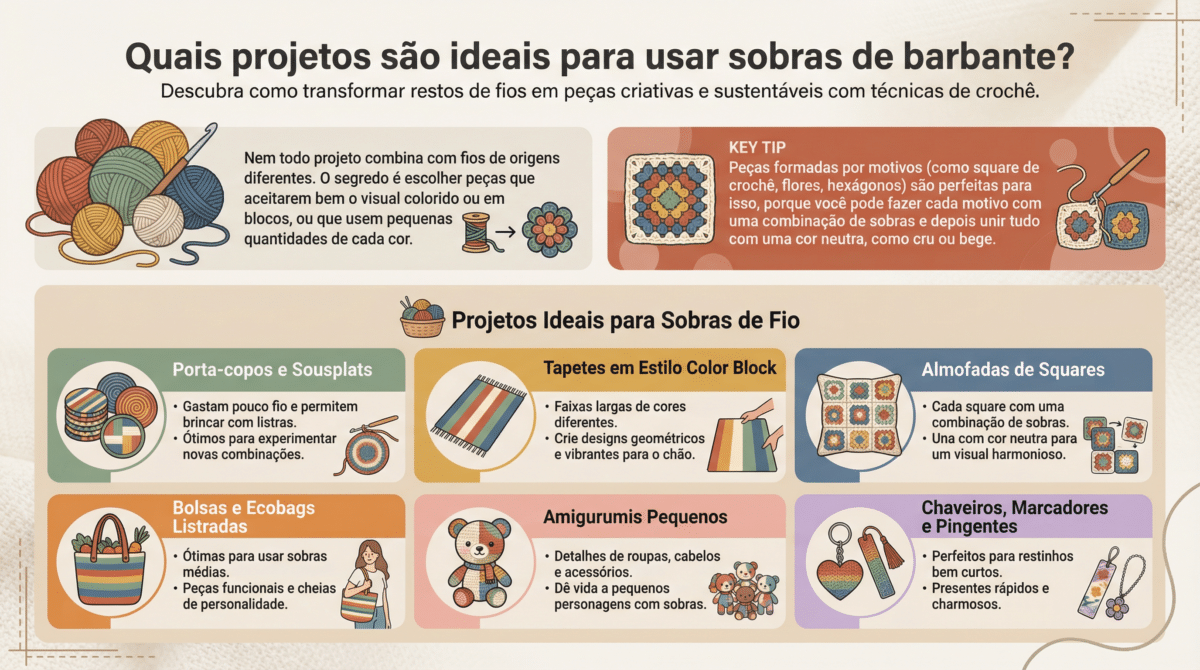 Ver aquele monte de sobras de barbante no canto da caixa de materiais dá uma mistura de culpa e dó: é dinheiro parado, bagunça visual e, muitas vezes, vai parar no lixo. Ao mesmo tempo, falta ideia prática do que fazer com restinhos de fio tão diferentes entre si.