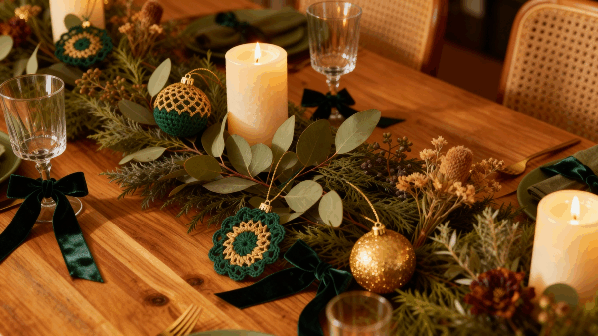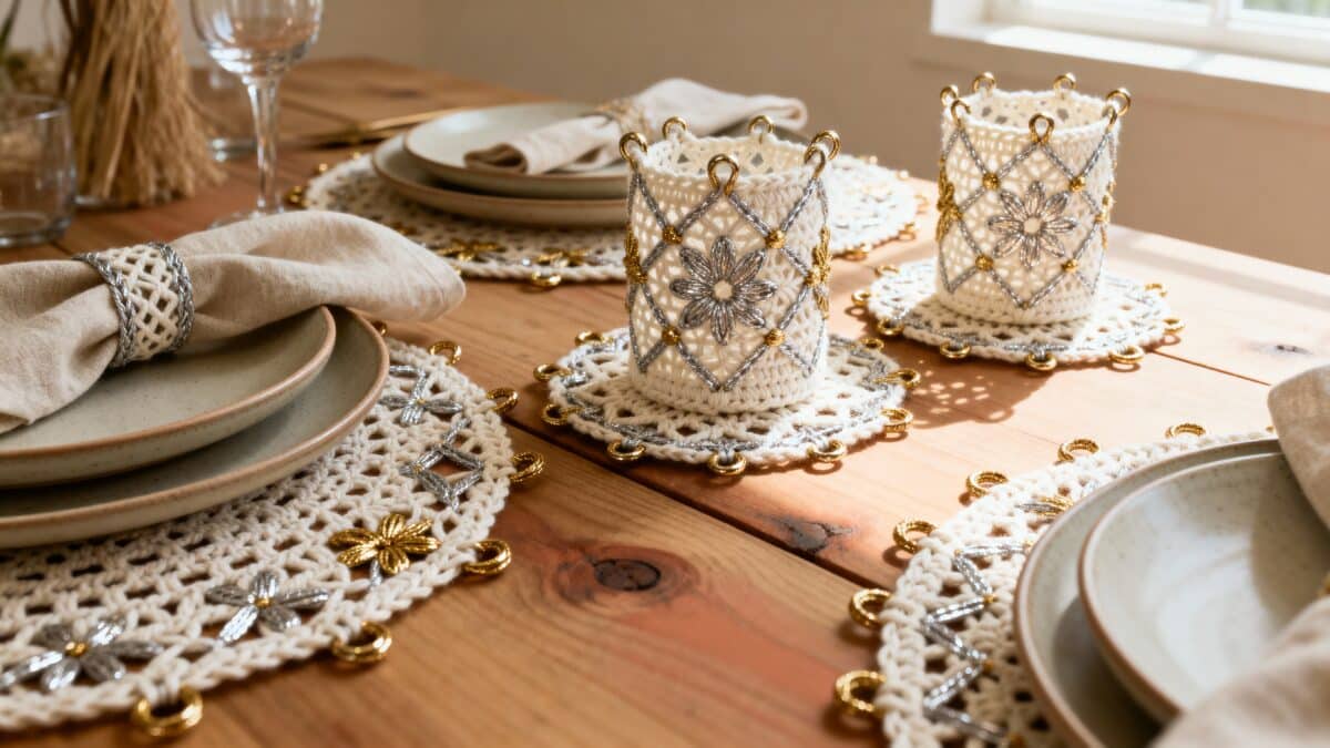 💡 Dica Katia Ribeiro: Aposte em sousplats, caminhos de mesa e porta-guardanapos de crochê com toques metálicos — eles combinam tradição e elegância de forma única.