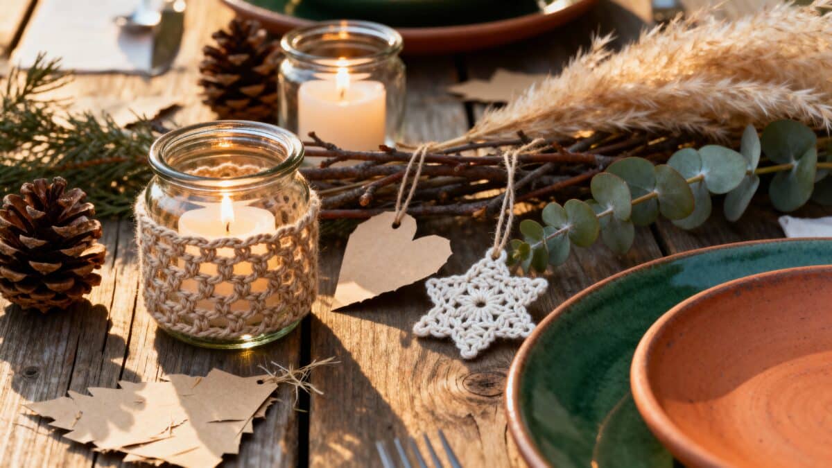💡 Dica prática: Reaproveite potes de vidro para criar castiçais, use fitas de anos anteriores e produza enfeites com retalhos de tecido e sobras de fio de crochê.