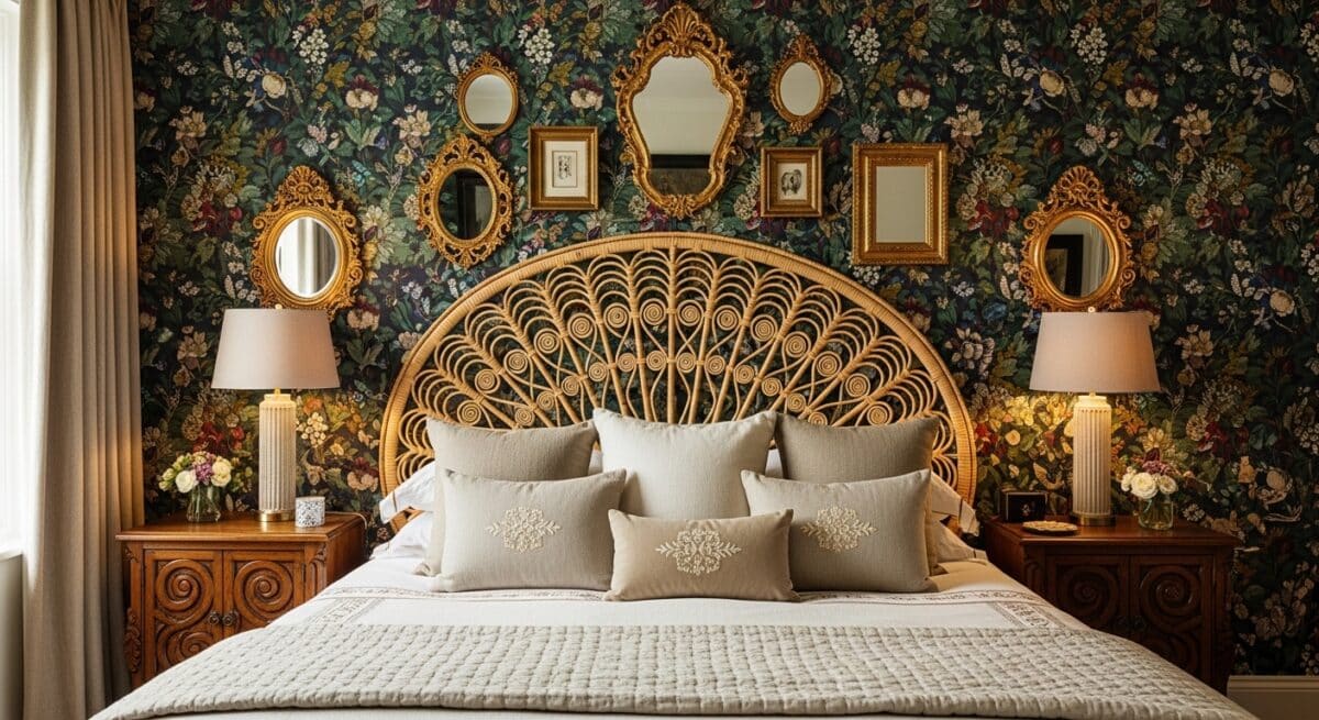 - Quarto: cabeceira marcante (capitonê, palhinha ou pintura geométrica), mix de roupas de cama (liso + padronado), luminárias de mesa com cúpula estampada.