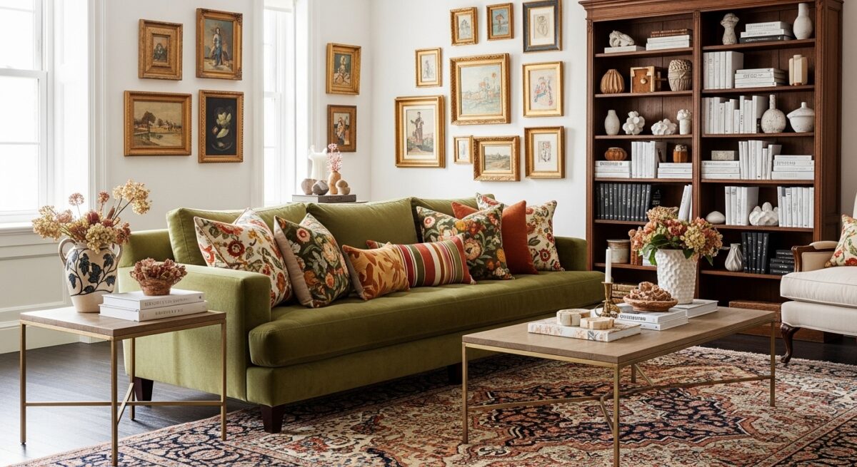 O princípio é simples: “mais, mas com método”. Você trabalha contraste (claro/escuro, liso/estampa, fosco/brilho), repete cores e motivos em pontos diferentes do ambiente e organiza coleções para contar uma história. O resultado é uma casa calorosa, interessante e viva.