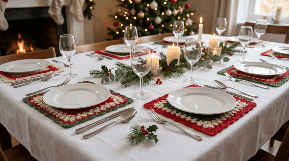 Não é só a peça em crochê que vende: é a maneira como você apresenta o conjunto. Em uma mesa posta, repita elementos: sousplat de crochê, guardanapo com argola de crochê, um enfeite pequeno no prato e um arranjo central com base de crochê já criam uma composição completa.