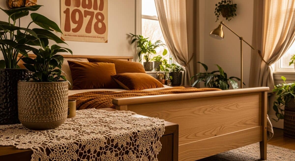 Os anos 70 foram o auge do tátil e do natural. Tudo convidava ao toque: veludos, tramas, crochês e fibras naturais dominavam os interiores.
