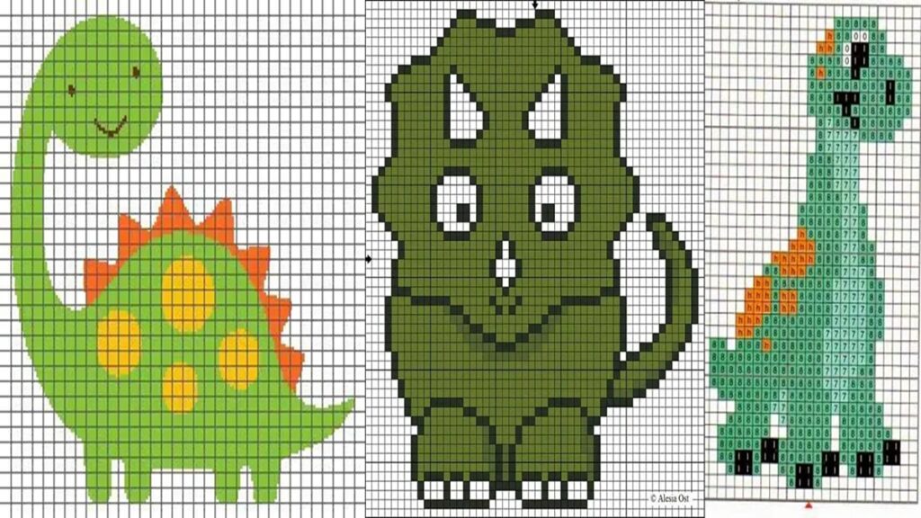 Aqui estão algumas opções de gráficos de dinossauro em ponto cruz: