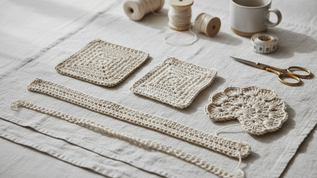 Comece por uma família curta de pontos que resolve muitos projetos, correntinha para base, ponto baixo para estrutura, meio ponto alto como curinga que dá rapidez sem perder firmeza e ponto alto para rendas leves. Combine blocos curtos, por exemplo, duas carreiras de ponto baixo entre leques de ponto alto, isso cria ritmo visual e evita que a peça “ondule”. Se quiser relevo, insira uma carreira de ponto alto em relevo pela frente a cada quatro carreiras, o desenho aparece e o tecido não pesa.