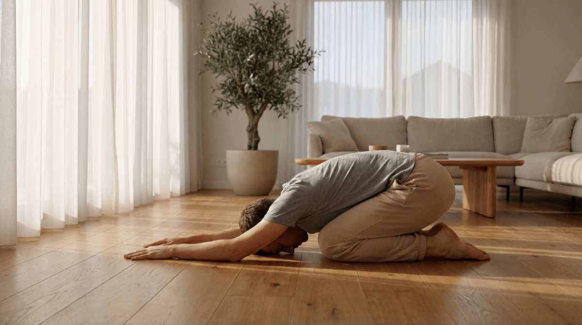 - Posição da Criança: Sente-se sobre os calcanhares e estique os braços à frente no chão, relaxando o peso do tronco.