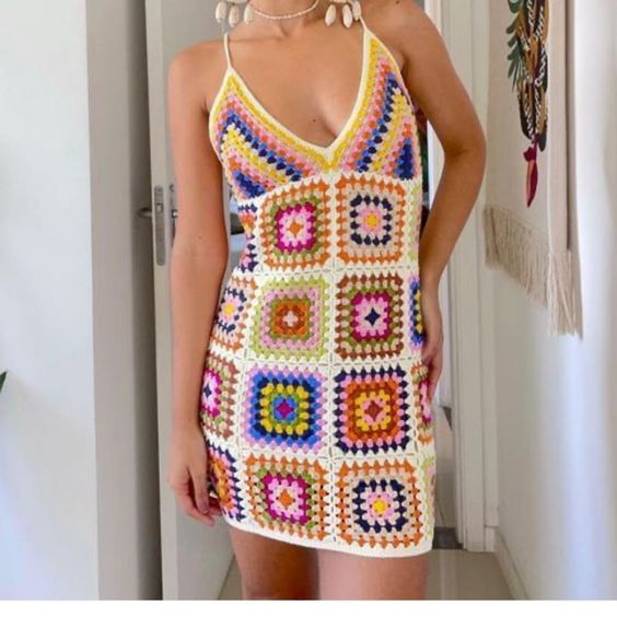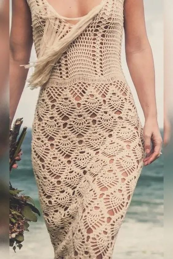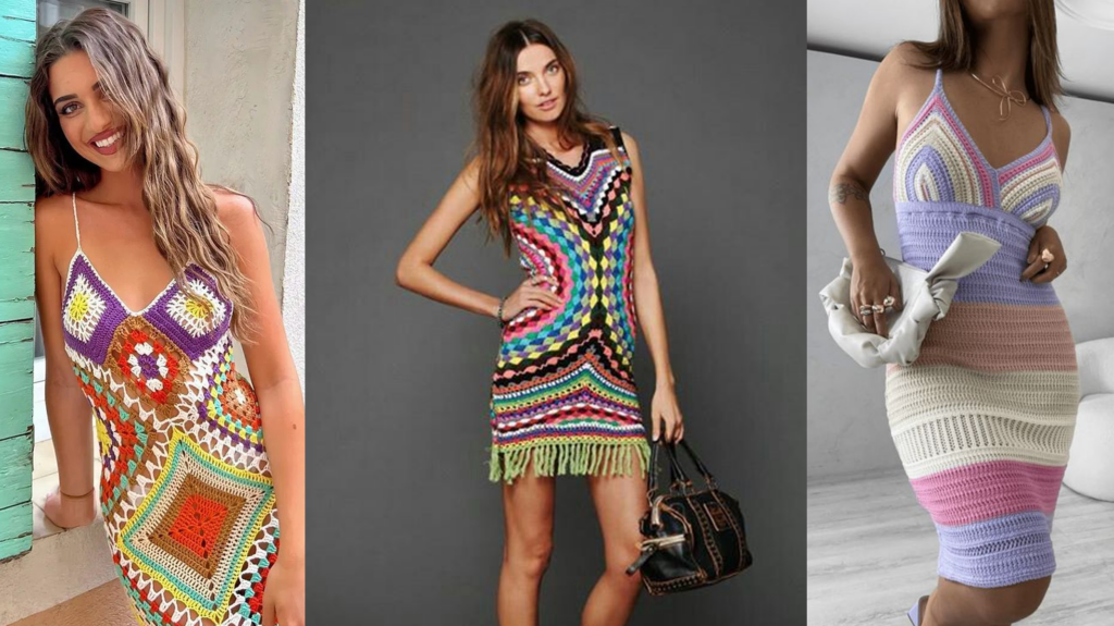 - Vestido de crochê com franjas: Um modelo despojado, perfeito para um look boho-chic.
