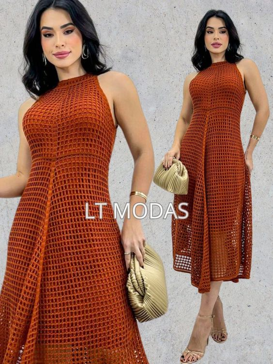 - Vestido midi com pontos abertos: Para quem busca elegância e frescor, o ponto aberto oferece leveza e estilo.