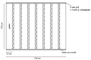 Tensão do ponto: 10 x 10 cm = 15 p. x 22 carr. (medidos sobre o p.m.).