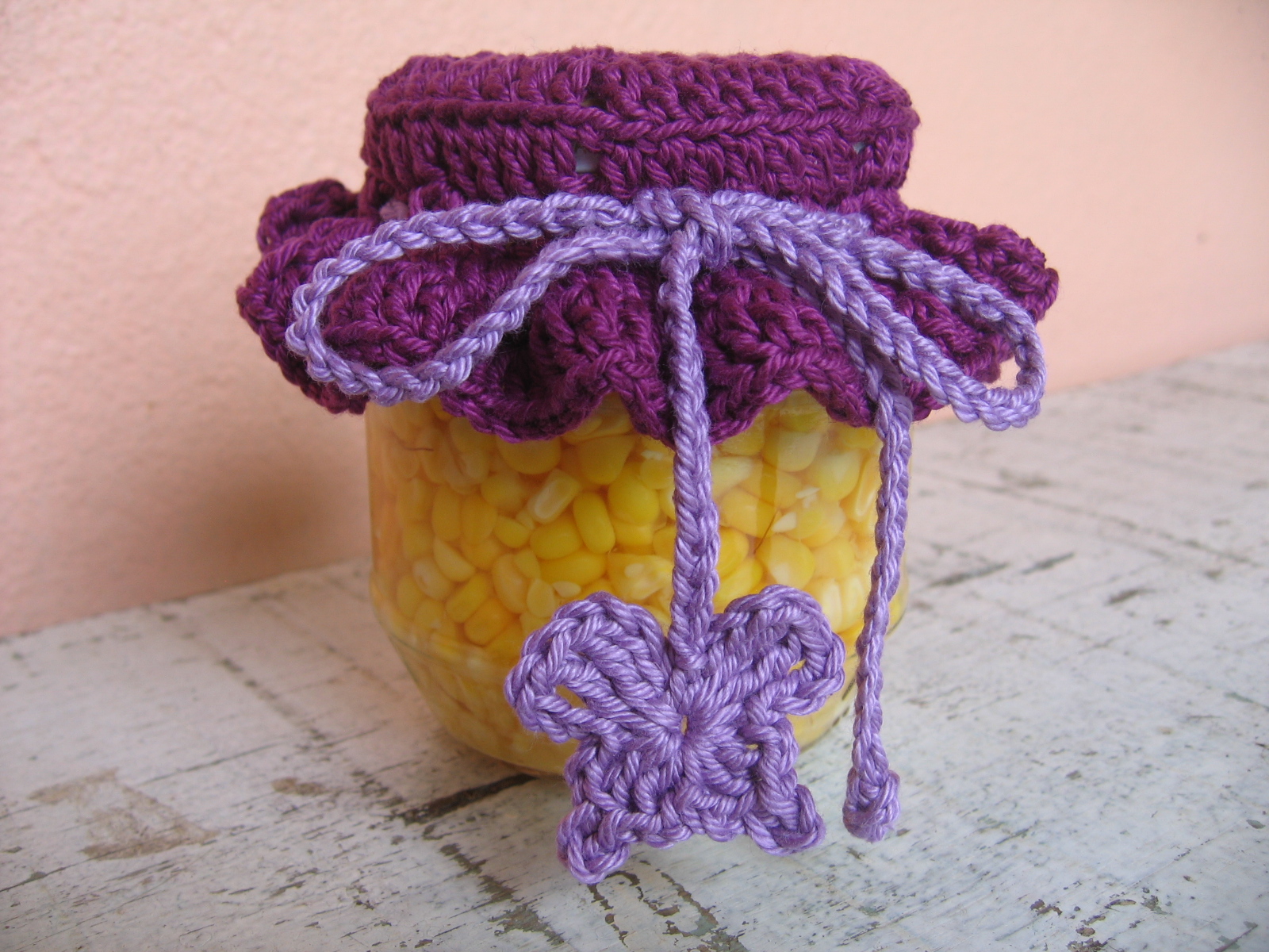 FRASCO DE VIDRO DECORADO COM CROCHÊ AQUI