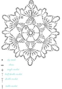 - Após a base, o próximo passo geralmente envolve a criação das pontas da estrela. Cada ponta é formada com uma sequência de pontos baixos, meio-pontos altos e pontos altos, conforme o gráfico. Algumas estrelas têm cinco pontas, outras podem ter seis ou mais, dependendo do desenho.