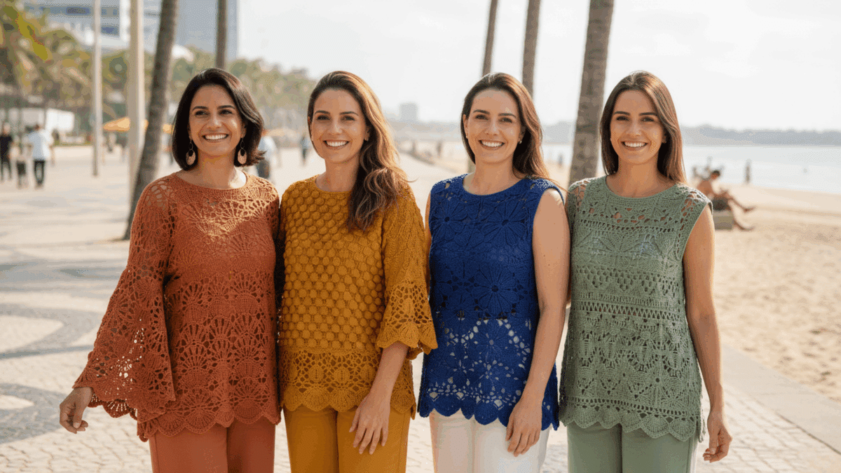 As blusas de crochê estilosas voltaram com força total e se tornaram peças indispensáveis para quem ama moda com personalidade. Elas unem o charme do feito à mão com design contemporâneo, criando looks únicos, versáteis e cheios de estilo.