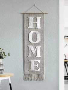 - Pendure: Quando a flâmula estiver pronta, basta prender na madeira ou no galho que você escolheu e amarrar um pedaço de fita ou cordão para pendurar na parede. E pronto! Sua flâmula de crochê está prontinha para brilhar na decoração.