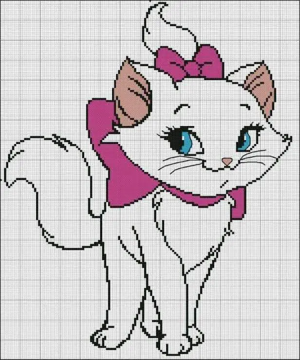 No filme “Aristogatas”, a Gatinha Marie simboliza charme e doçura. Com sua pelagem branca como neve e olhos brilhantes, ela imediatamente cativa o público. Sua presença na tela é como um raio de luz, enchendo corações com alegria e ternura. Bordar sua imagem em ponto cruz é uma forma de preservar essa magia e compartilhar com quem amamos.