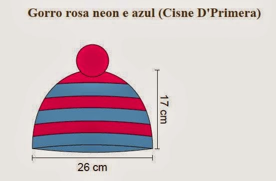• Gorro – com o fio rosa neon monte 4 corr., feche o anel com 1 p.bx. laçando a 1ª corr. e trab. carr. de m.p.a. ao redor, sendo a 1ª carr. com 12 m.p.a., 2ª carr. com 18 m.p.a., 3ª carr. com 24 m.p.a., 4ª carr. na cor azul turquesa com 34 m.p.a., 5ª carr. na cor azul turquesa com 36 m.p.a., 6ª carr. na cor rosa neon com 36 m.p.a., 7ª carr. na cor rosa neon com 42 m.p.a., 8ª carr. na cor azul turquesa com 42 m.p.a., 9ª carr. na cor azul turquesa com 42 m.p.a., 10ª carr. na cor rosa neon com 42 m.p.a., 11ª carr. na cor rosa neon com 42 m.p.a., 12ª carr. na cor azul turquesa com 42 m.p.a., 13ª carr. na cor azul turquesa com 42 m.p.a.. Arrem..